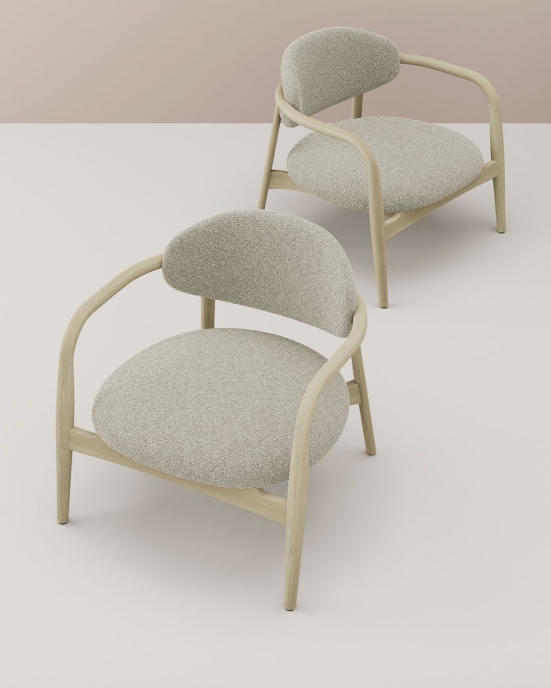 Lounge. Schienale e sedile imbottiti. Struttura in legno massello di frassino.