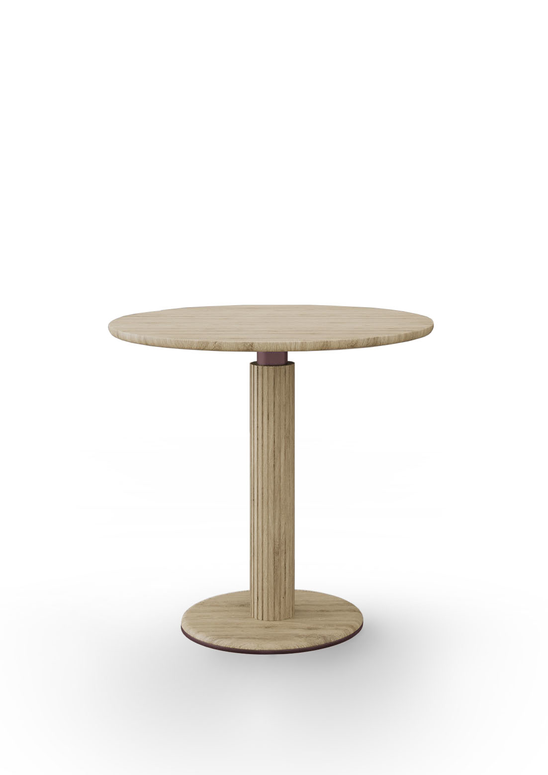 Table with a round central metal base Ø45 cm covered in solid ash wood.