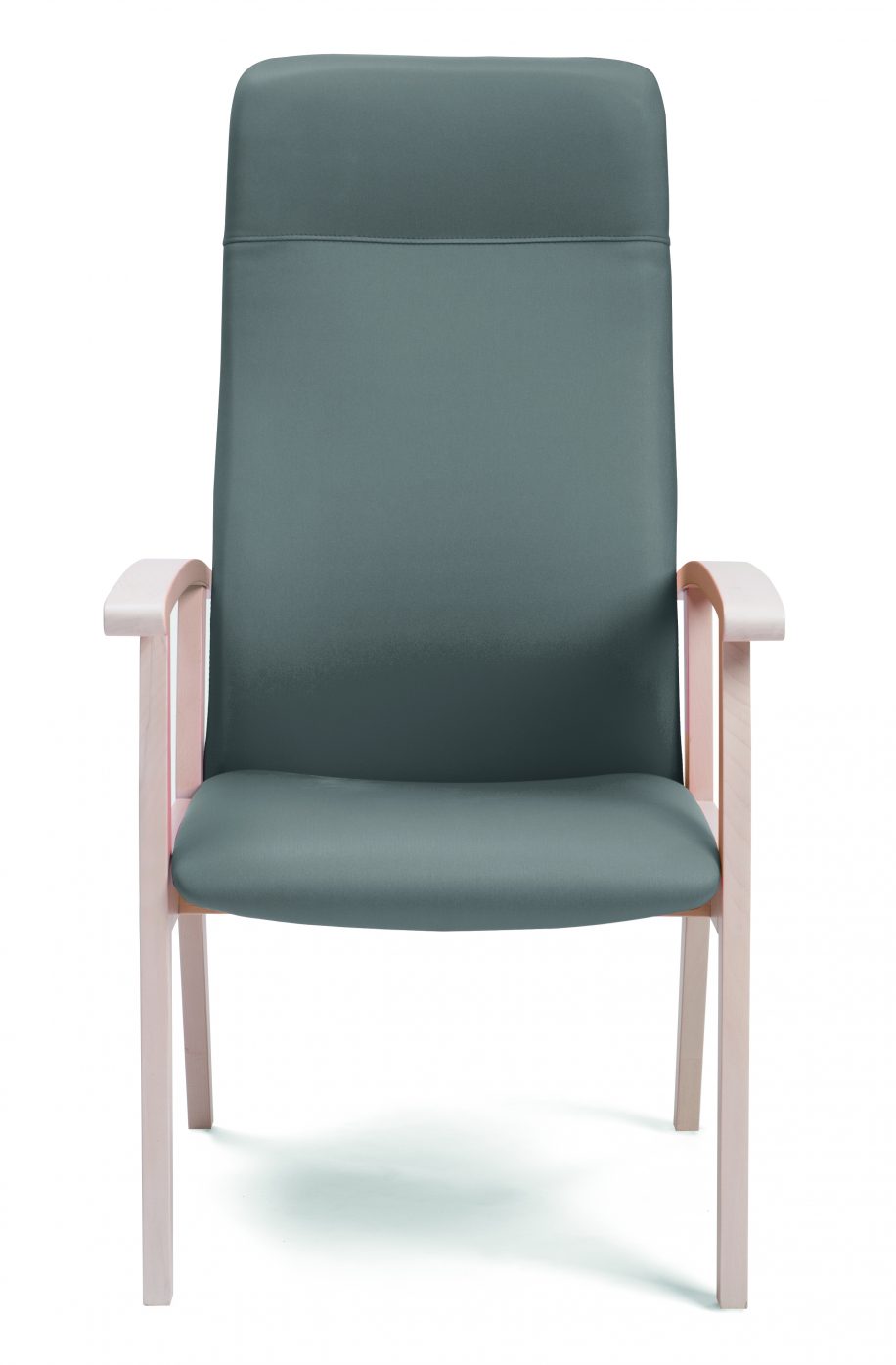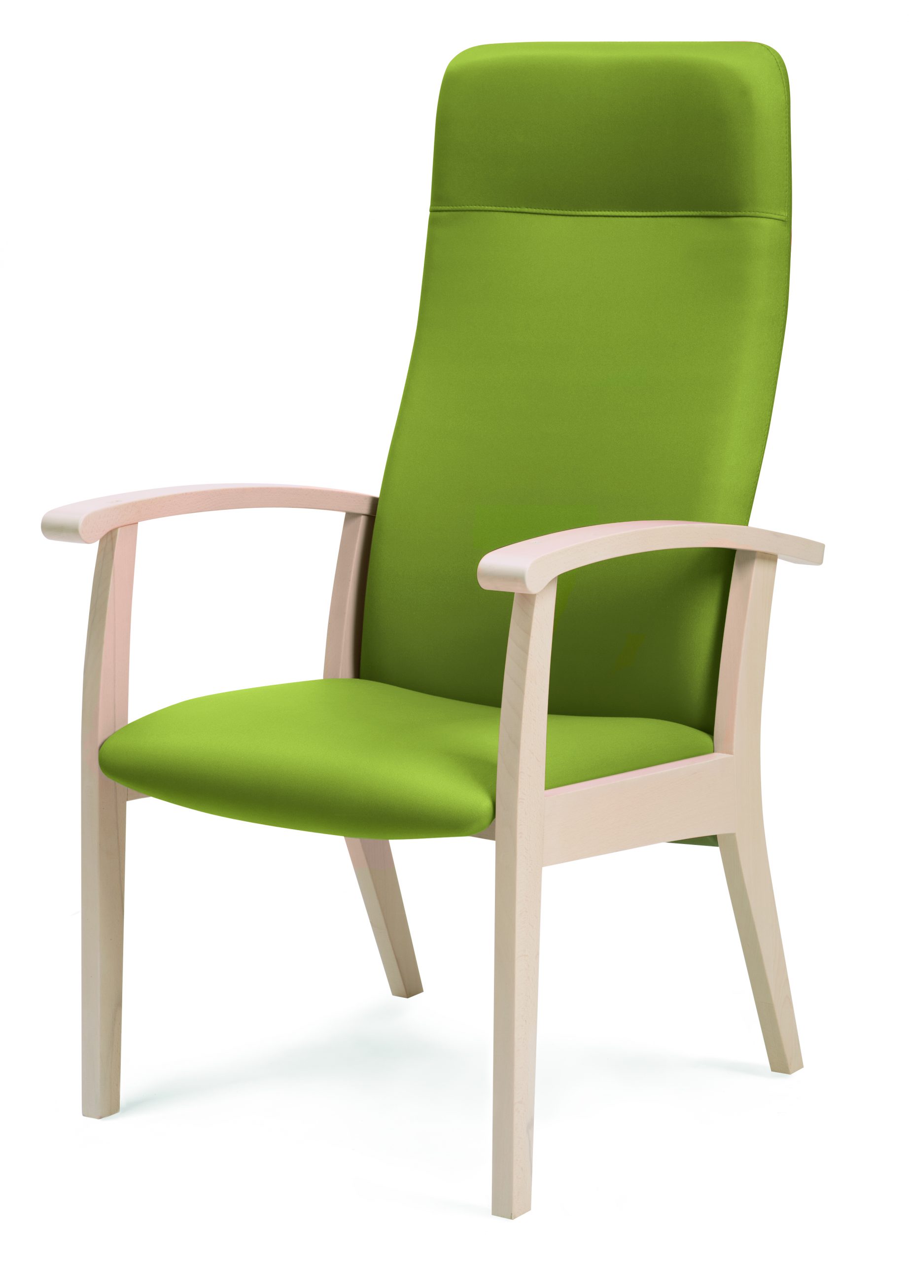 Armchair with high back and shaped padding.
